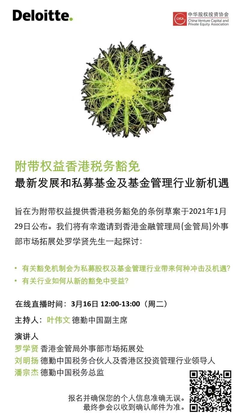 CVCA线上直播 - 附带权益香港税务豁免最新发展和私募基金及基金管理行业新机遇