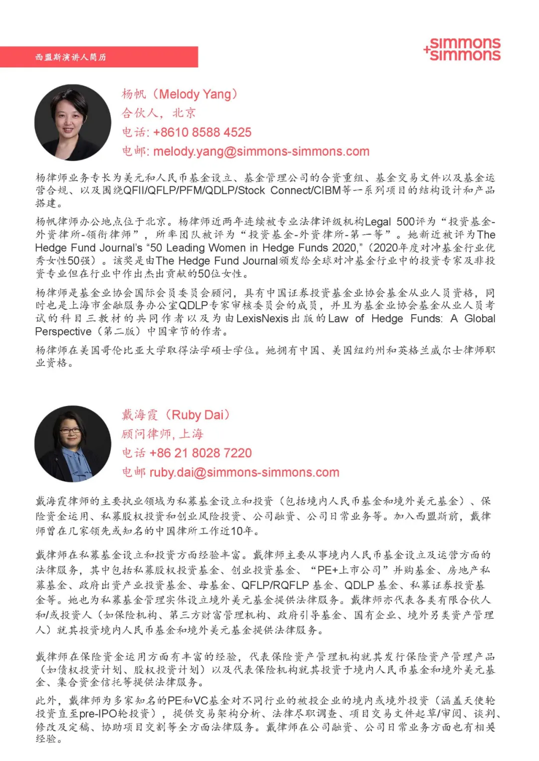 | 14:00 - 14:45 | 不同城市的QFLP政策比较 离岸基金热门结构一览 杨 帆 西盟斯律师事务所 合伙人 |